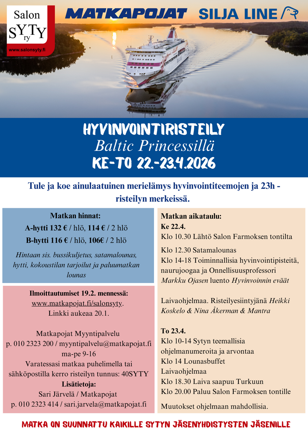 Ilmoittaudu Sytyn jäsenyhdistysten jäsenille tarkoitetulle risteilylle tästä: